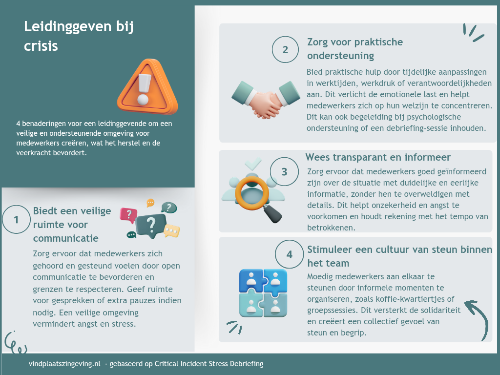 De volgende ochtend is alles anders. Normaal begint het werkoverleg met grapjes en koffie. Nu is het stil. Iedereen was er gisteren bij. Een incident. Heftig. Onverwacht. Iets wat nog steeds door het team heen trilt. De leidinggevende kijkt rond en twijfelt even.