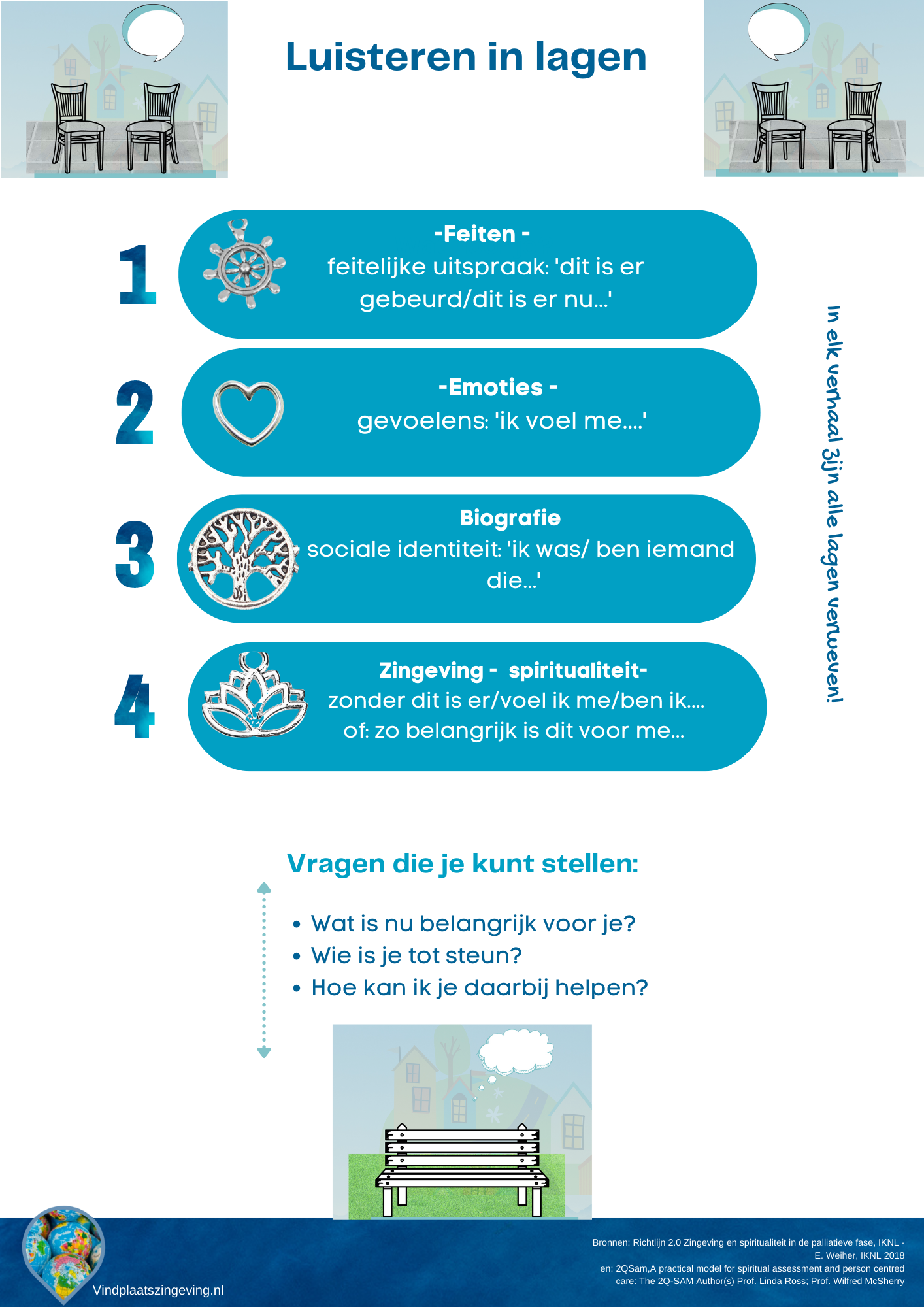 Levensvragen zijn vragen die opkomen als je leven anders loopt dan je had gehoopt. Als je door ziekte, verlies of beperking ineens wordt stilgezet. Naast allerlei emoties en gedachten, kan dan ook de dieper liggende vraag: waar doe ik het voor, waar leef ik voor? steeds maar terugkomen.